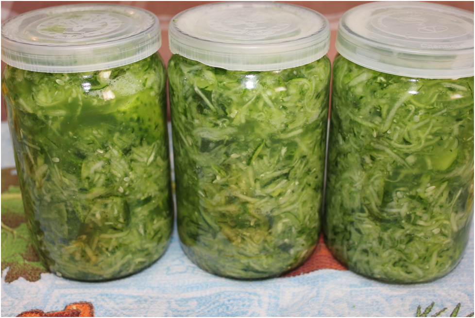 Подготовка банок. Хорошо вымыть банки и крышки с содой. Стерилизация — на ваш выбор, так как продукт будет закладываться в сыром виде. Крышки могут быть винтовыми или капроновыми.Нарезка огурцов. Переросшие огурцы натереть на крупной тёрке. Это поможет выделить максимум сока в дальнейшем.Смешивание. В натертую массу добавить измельчённый чеснок и соль, тщательно перемешать и оставить на 40-60 минут. За это время огурцы впустят много сока.Подготовка маленьких огурцов. В это время можно подготовить другие огурцы разного размера: целые, половинки или брусочки — это зависит от удобства укладки в банку.Закладка в банки. После настаивания огуречной массы, чередовать её с подготовленными огурцами. Важно, чтобы верхний слой был покрыт жидкостью.Хранение. Закрыть банки крышками и убрать в холодильник или погреб. На начальном этапе хранения стоит подставить под банки поддон или лоток: огурцы могут подтекать.Приготовленные по этому рецепту огурцы получаются хрустящими, и идеально подойдут для салатов, винегретов и даже супов. Можно использовать как целые огурцы, так и натертые. Приятного аппетита и удачи в заготовках!