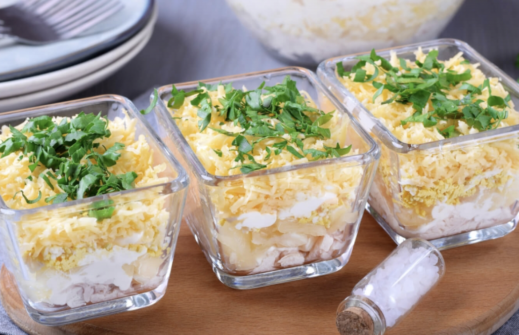 1. Салат с курицей, сыром и ананасом