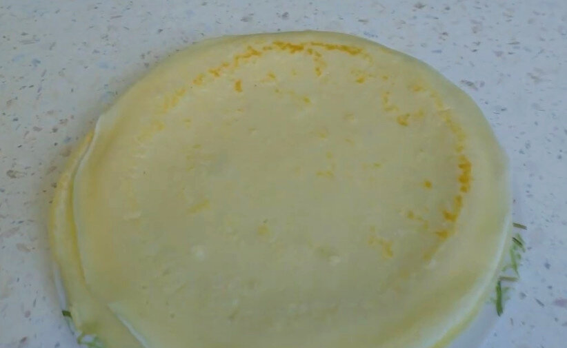 Налить тесто тонким слоем по всей поверхности. Поджаривать до появления золотистой корочки, затем перевернуть и дожарить с другой стороны.