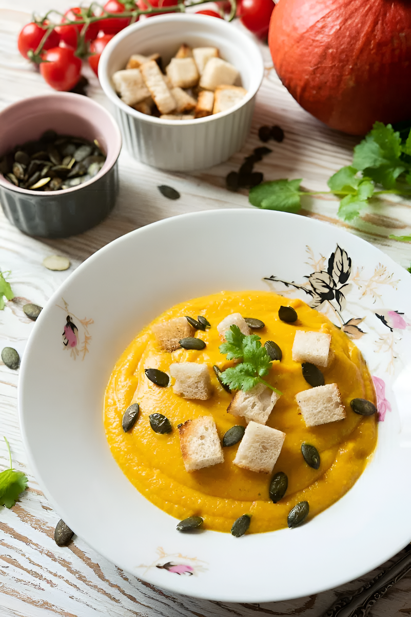 Тыквенный крем-суп — это не просто блюдо, а настоящая кулинарная находка, способная завоевать сердца с первой ложки! Нежная текстура, насыщенный цвет и неповторимый вкус делают его обязательным в сезон тыквы. Неудивительно, что этот суп часто называют фирменным благодаря его гармоничному сочетанию сладости и пряностей.