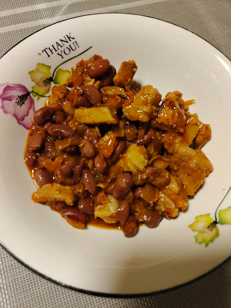 В один из вечеров был приготовлен экспресс-ужин: свинина, обжаренная с луком и морковью, а затем дополненная банкой консервированной фасоли в томате. Блюдо получилось вкусным, но немного недостаточным. Это напомнило о том, что стоит вновь начать готовить фасоль, а не полагаться только на консервированную.