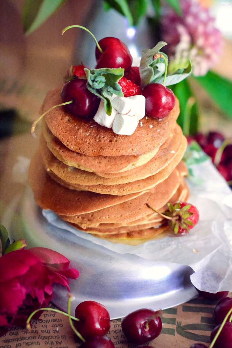 Подавайте банановые панкейки по своему желанию: с ягодами, медом, сгущенкой или сметаной. Приятного аппетита!