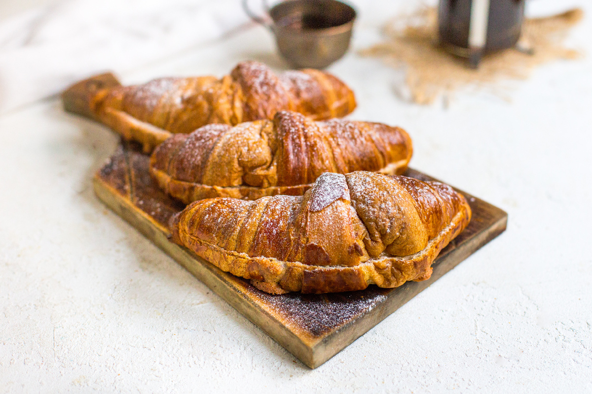 Также круассаны можно легко приготовить и без духовки. Для этого нагрейте пустую сковороду, выложите на неё пергамент, разместите круассаны и накройте крышкой. Нагревайте на среднем огне 7-10 минут, периодически переворачивая.