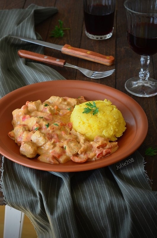 В Венгрии паприкаш часто дополняют макаронами или тархоней — уникальными традиционными изделиями. В то же время, подачи этого блюда с мамалыгой вдохновил роман Брэма Стокера "Дракула". В своем дневнике главный герой вспоминает о том, как отведал паприкаш с мамалыгой, что создает интересный симбиоз венгерской и румынской кулинарных традиций.