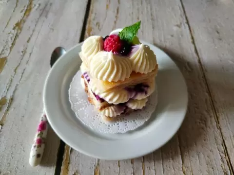 Французский десерт мильфей, что в переводе означает "тысяча лепестков", удивляет своим изысканным вкусом и текстурой. Отличительной чертой мильфея является его нежная хрустящая основа, которая сохраняет рассыпчатость благодаря слоеному тесту. Это лакомство идеально подходит для торжеств, а ещё лучше – для того, чтобы порадовать себя и близких в любой день.