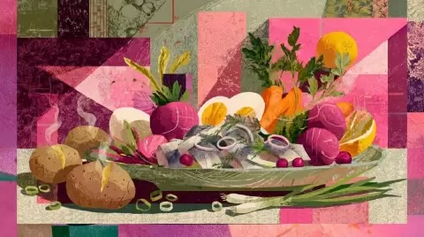 Совсем недавно привычное меню многих людей превратилось в нечто, похожее на известный салат «селёдка под шубой». Здесь привычные ингредиенты заменяются более здоровыми альтернативами: вместо селёдки используется курица, вместо картофеля — цельнозерновой рис, а майонез уступает место креативному яичному соусу на основе греческого йогурта.