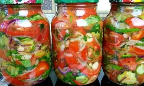 Этот салат состоит из множества компонентов, что делает его настоящим витаминным хранилищем. Он не только отлично хранится, но и позволяет разнообразить зимнее меню, создавая ощущение, что вы только что собрали овощи с огорода.