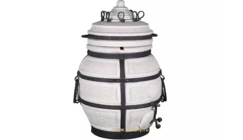 Толщина стенок тандыра достигает 5 см, что позволяет ему долго держать тепло и готовить сразу несколько блюд на одной растопке. В комплекте с печью идут необходимые принадлежности: шампуры, кочерга, совок и колосник, что делает процесс готовки еще более удобным.