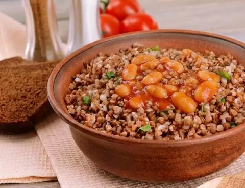 Гречка с грибами и фасолью