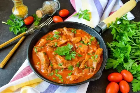 Свежий вкус свинины, томатный соус и мягкий картофель делают это блюдо идеальным для любого семейного ужина. Его насыщенный аромат и богатство текстур порадуют даже самых требовательных гурманов.