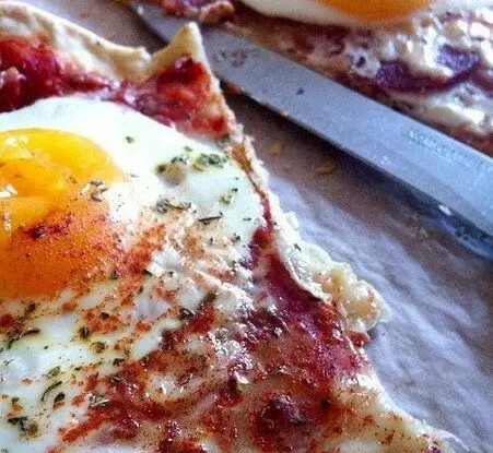 Готовить пиццу можно с любыми начинками, в зависимости от предпочтений. Для разнообразия и колорита рекомендуется посыпать пиццу молотой паприкой. Чтобы сделать блюдо менее калорийным, идеально подойдет обезжиренный сыр (например, сыр Ольтермани 17%), который уже нарезан кружочками. Тесто получается тонким и легким, как армянский лаваш. Учтите, что температура выпекания может варьироваться в зависимости от вашей духовки.