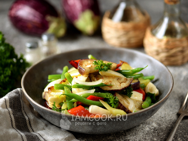 Теплый салат из баклажанов и перца