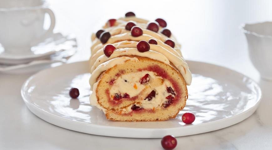 Этот рулет станет настоящим открытием для всех любителей ярких вкусов. Сочетание воздушного бисквита, ароматного крема с апельсином и насыщенной клюквы создаёт гармоничное и запоминающееся лакомство.