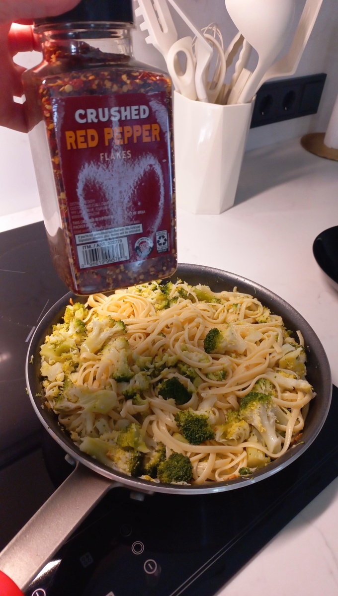 В той же воде, где варилась брокколи, готовят спагетти согласно инструкции на упаковке. Это позволяет пасте впитать оставшиеся полезные вещества от овощей.