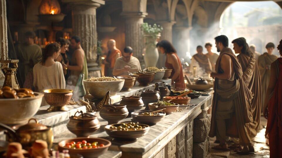 После долгого рабочего дня римляне стекались в термополии — заведения, которые по сути служили предшественниками современных фуд-кортов. Их меню могло бы удивить многих современников: что же предлагали посетители этих античных закусочных?
