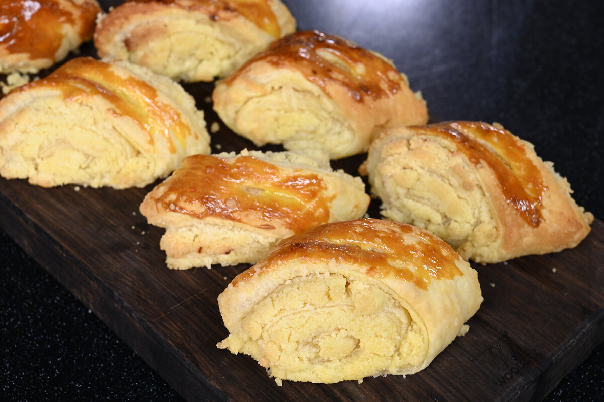 Отделить желтки от белков. Белки оставить, а желтки взбить с мягким сливочным маслом, добавить лимонную кислоту, водку и уксус до однородной массы.Постепенно вмешивать муку и воду, чтобы получить тесто нужной консистенции. На рабочей поверхности слепить тесто, предварительно посыпав ее мукой, и оставить на некоторое время для отдыха.В отдельной миске смешать оставшееся сливочное масло и муку до получения однородного состояния.Раскатать тесто и смазать его полученной смесью. Сложить в виде конверта, раскатать снова, повторить процедуру несколько раз, после чего оставить в холодильнике на полчаса.Приготовить начинку, смешав ее ингредиенты руками. Раскатать тесто, равномерно распределить начинку и свернуть в рулет.Сделать диагональные надрезы на рулете и нарезать его на порционные кусочки. Выложить на противень с пергаментом и смазать взбитым белком.Отправить противень в разогретую до 180 градусов духовку на 10 минут.Ваше вкусное печенье гата готово! Наслаждайтесь его неповторимым вкусом с чаем или кофе, сообщает Дзен-канал "КУХНЯ.РФ".