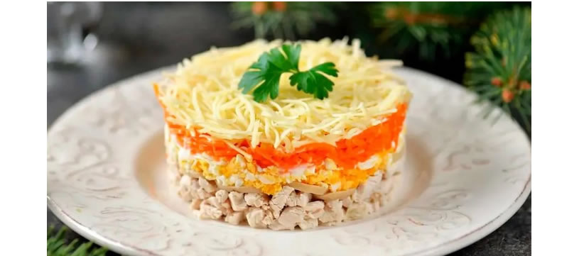 Совет: Чтобы вкус стал ещё ярче, рекомендуется дать салату настояться в холодильнике 1–2 часа. За это время слои ароматно пропитаются.