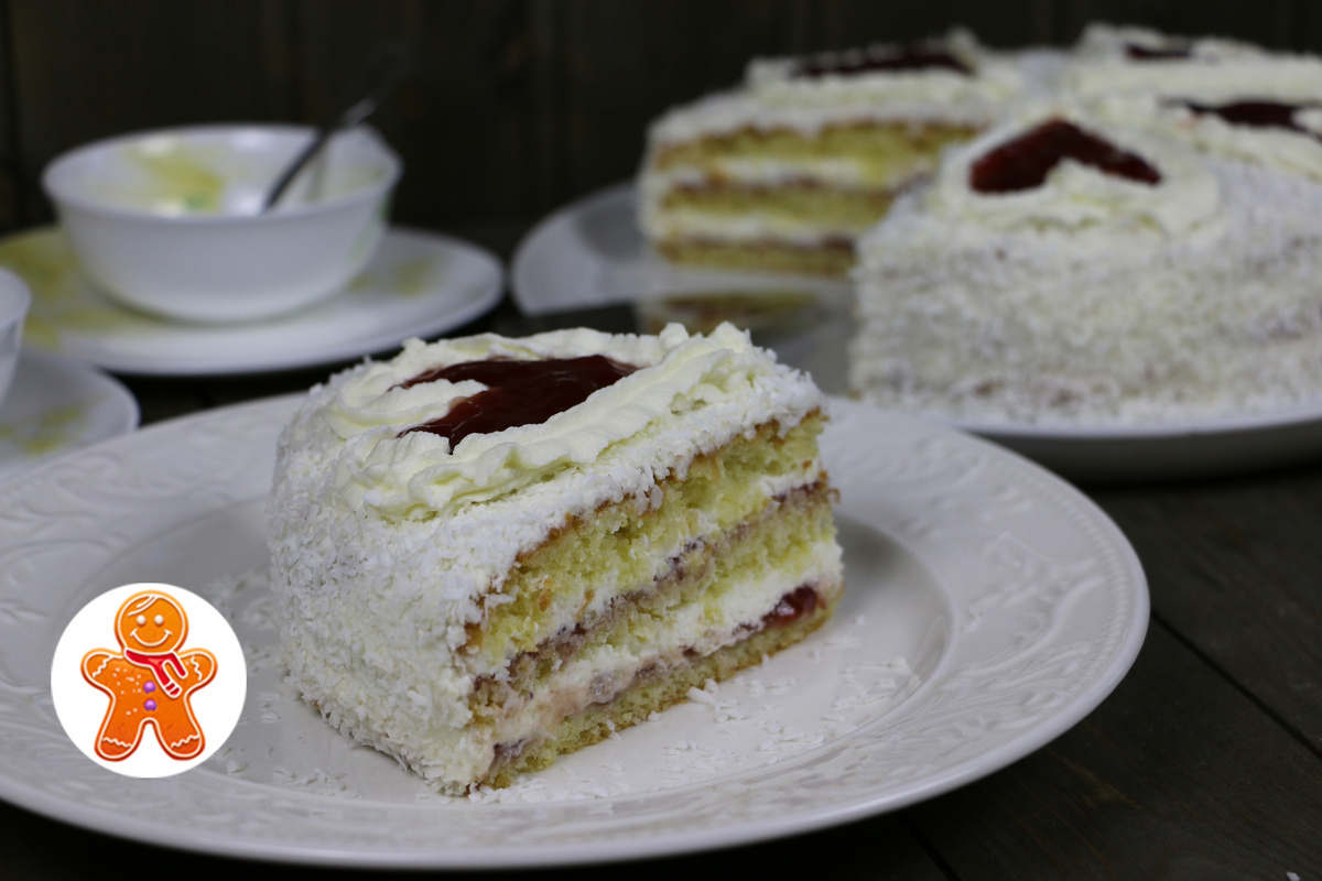 Легкий и воздушный десерт, торт "Нежный" — это идеальное сочетание кокосовой стружки, взбитых сливок и фруктового конфитюра. Приготовление этого кулинарного шедевра совершенно не потребует много времени и усилий. Давайте посмотрим на ингредиенты и процесс создания вкусного угощения!