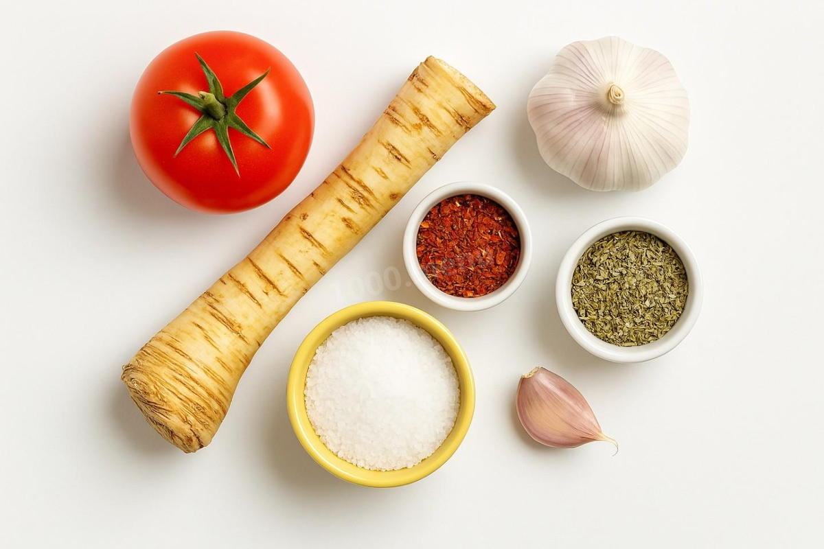 При создании закуски из хрена и помидоров не забудьте о подходящих специях: