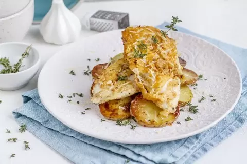 Шаг 5: На подачу выложите горячий картофель на тарелку, сверху разместите обжаренные отбивные и посыпьте свежим тимьяном. Блюдо следует подавать немедленно, чтобы насладиться непревзойденным вкусом!