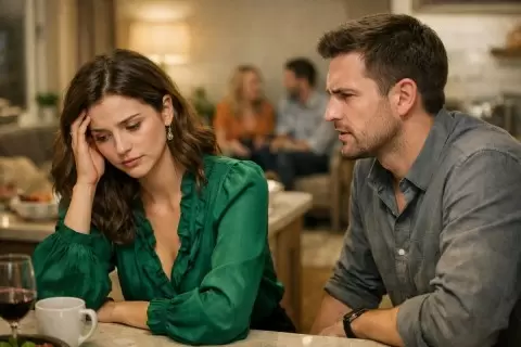 "Ты не можешь просто уйти!" - воскликнул Денис, когда она улетела. Её ответ был коротким: "Я уезжаю к маме. Пытаюсь понять, стоит ли оставаться с тем, кто считает мою боль шуткой для своих родственников".