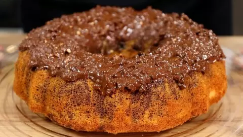 7. После выпечки дайте кеку немного остыть, затем аккуратно извлеките его из формы. Можно украсить сверху сахарной пудрой или растопленным шоколадом.