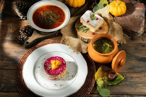 Легкий крем-суп из мускатной тыквы с лемонграссовой пеной и печеным камамбером станет отличным началом ужина, а пхали из тыквы с кизиловым кули — оригинальным угощением для гостей. Не забывайте про тыквенное ризотто с креветками и спаржей — его сливочная текстура и яркий вкус подарят ощущение праздника.
