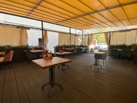 Погода располагала к отдыху, и многие предпочли посидеть на улице. С внешней стороны заведение выглядит несколько непривлекательно, но внутри царит комфортная обстановка с деревянными столами, мягкими стульями и зелеными растениями, которые создают уютный уголок для отдыха. Под ярким солнечным небом можно не только насладиться атмосферой, но и попробовать различные блюда местной кухни.