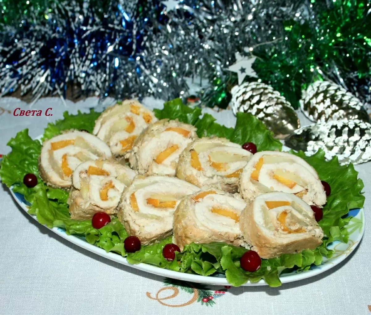 Необычный куриный рулет с фруктами для вашего праздничного стола