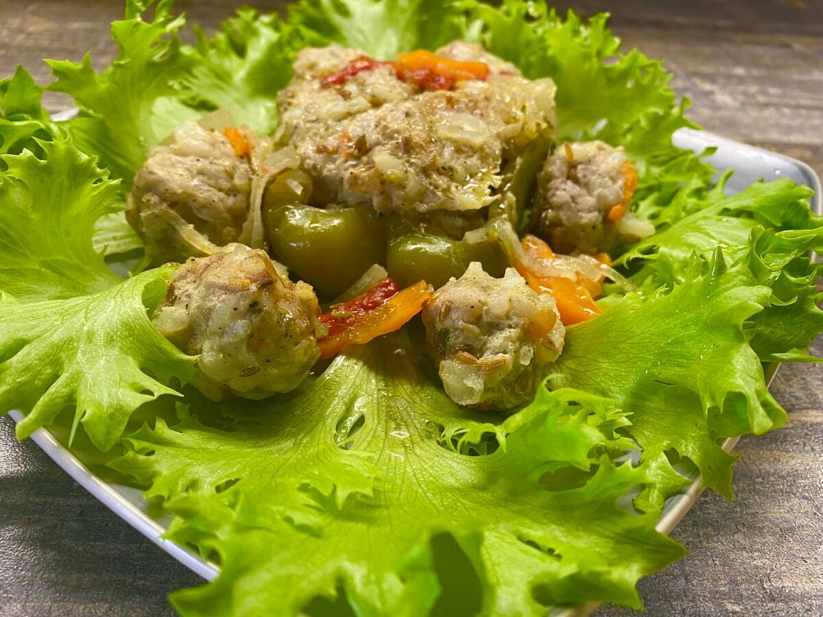 3. Из оставшегося фарша сформируйте небольшие фрикадельки и добавьте их к начиненным половинкам.