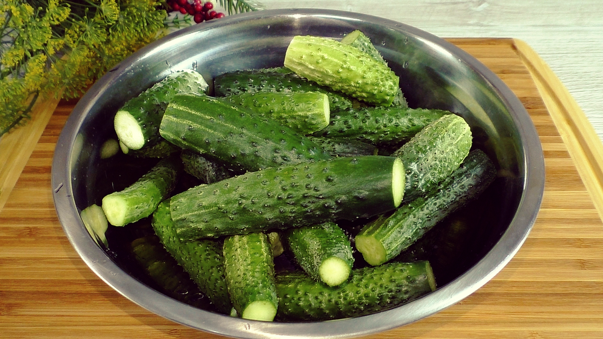 Для начала огурцы стоит замочить в холодной воде как минимум на полчаса, после чего тщательно промыть и очистить от лишних элементов. Банки следует подготовить, промывая их с содой и стерилизовав в духовке, а крышки обдать кипятком.